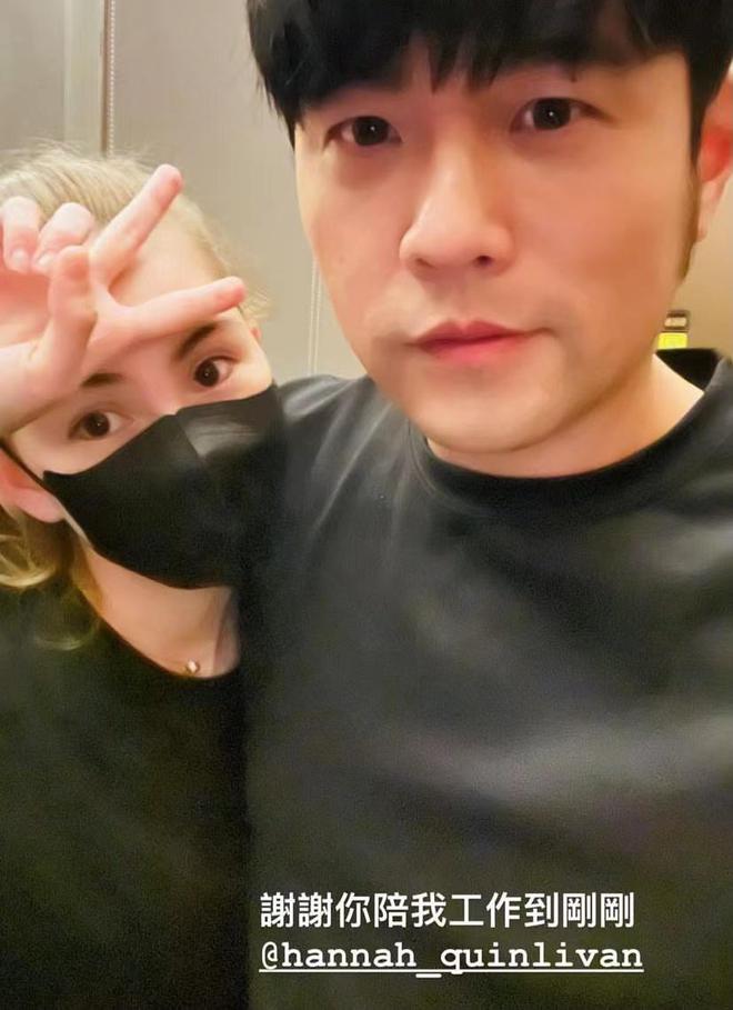 2日凌晨,周杰伦在社交平台晒出和昆凌的合照,并感性发文:“谢谢你陪我工作到刚刚”。照片中,周杰伦搂着妻子,昆凌戴着口罩比耶很是恩爱。随后昆凌转发该动态并回复了一个爱心,两人也太甜蜜了!