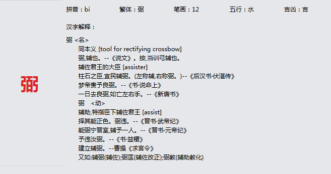 弼 拼音:bi 繁体:弼 笔画:12 五行:水 吉凶:吉