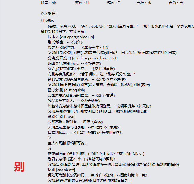 别 拼音:bie 繁体:别 笔画:7 五行:水 吉凶:吉