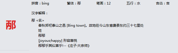 邴 拼音:bing 繁体:邴 笔画:12 五行:水 吉凶:吉