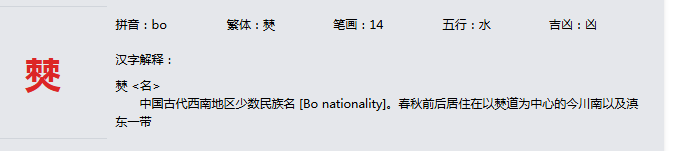 僰 拼音:bo 繁体:僰 笔画:14 五行:水 吉凶:凶