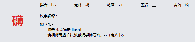 礴 拼音:bo 繁体:礴 笔画:21 五行:土 吉凶:凶
