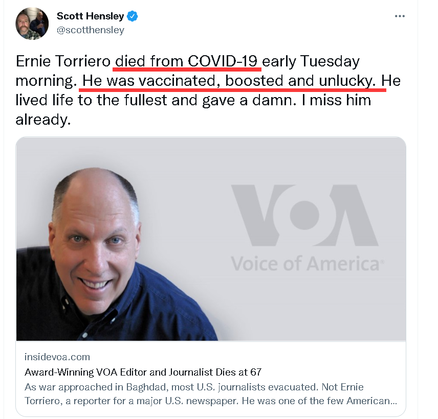 不过,更引人关注的是他的死因。多名熟悉他的美国媒体人透露,他是在注射了新冠疫苗以及变种毒株的加强针后,仍然感染新冠病毒死亡的。而且即便上了呼吸机也无济于事。