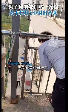 男子打赌头卡栏杆5小时:太尴尬,不好意思报警