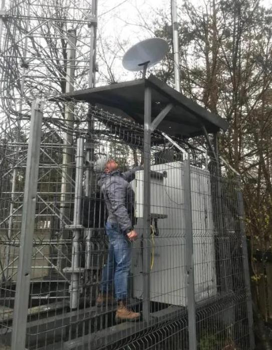 沃达丰乌克兰公司提供的工程师调试白色天线的画面。